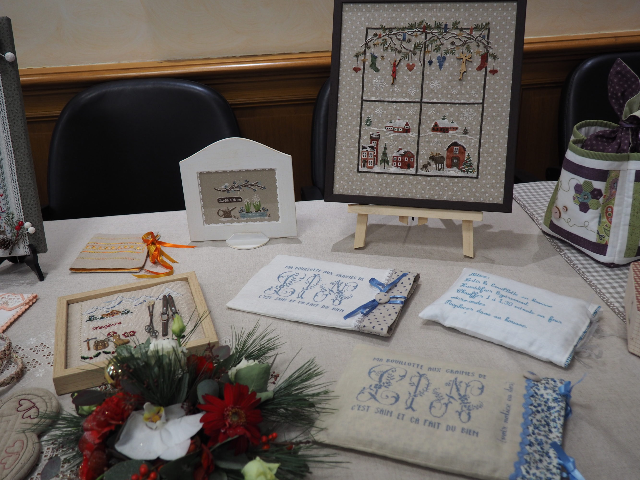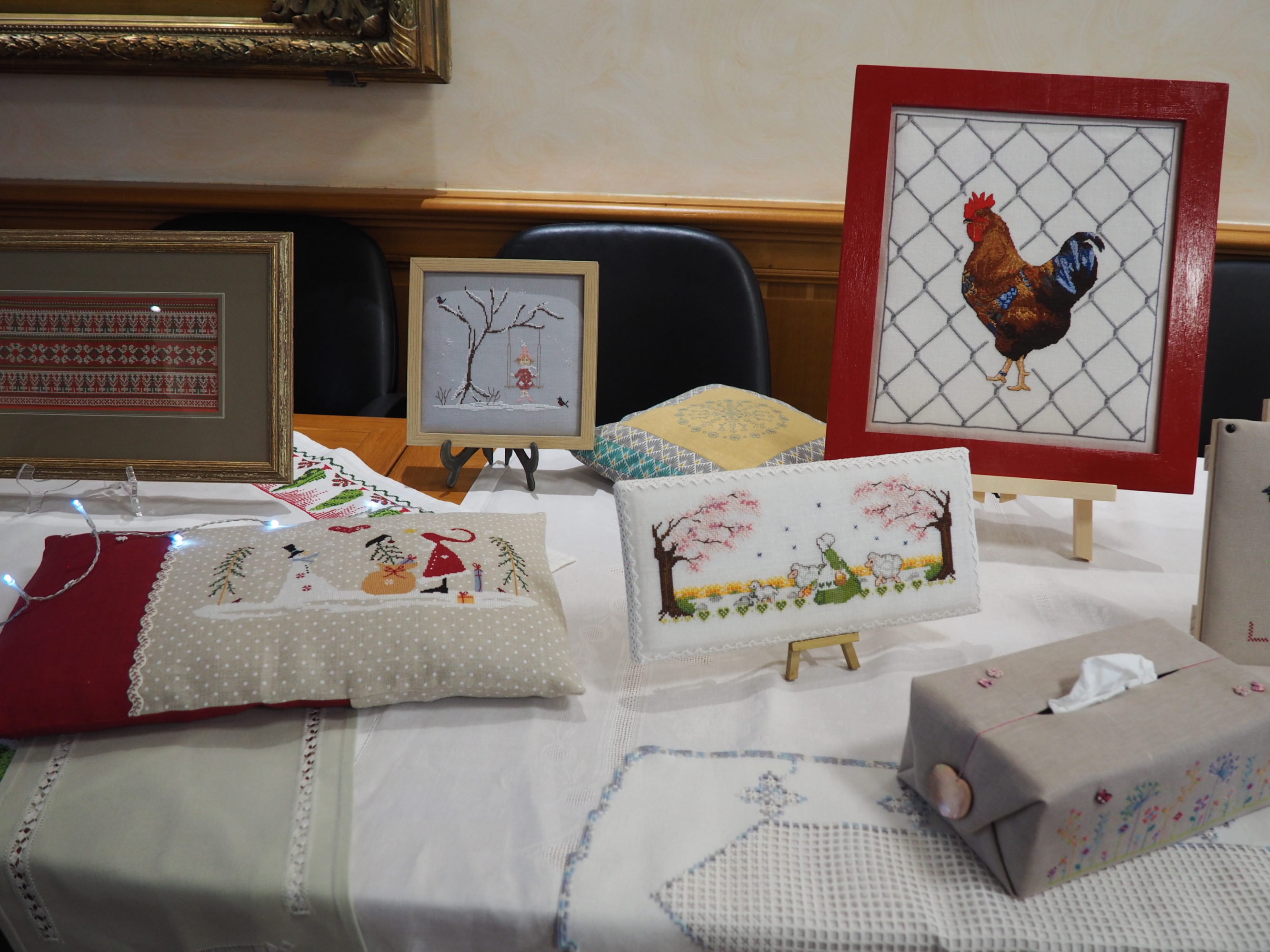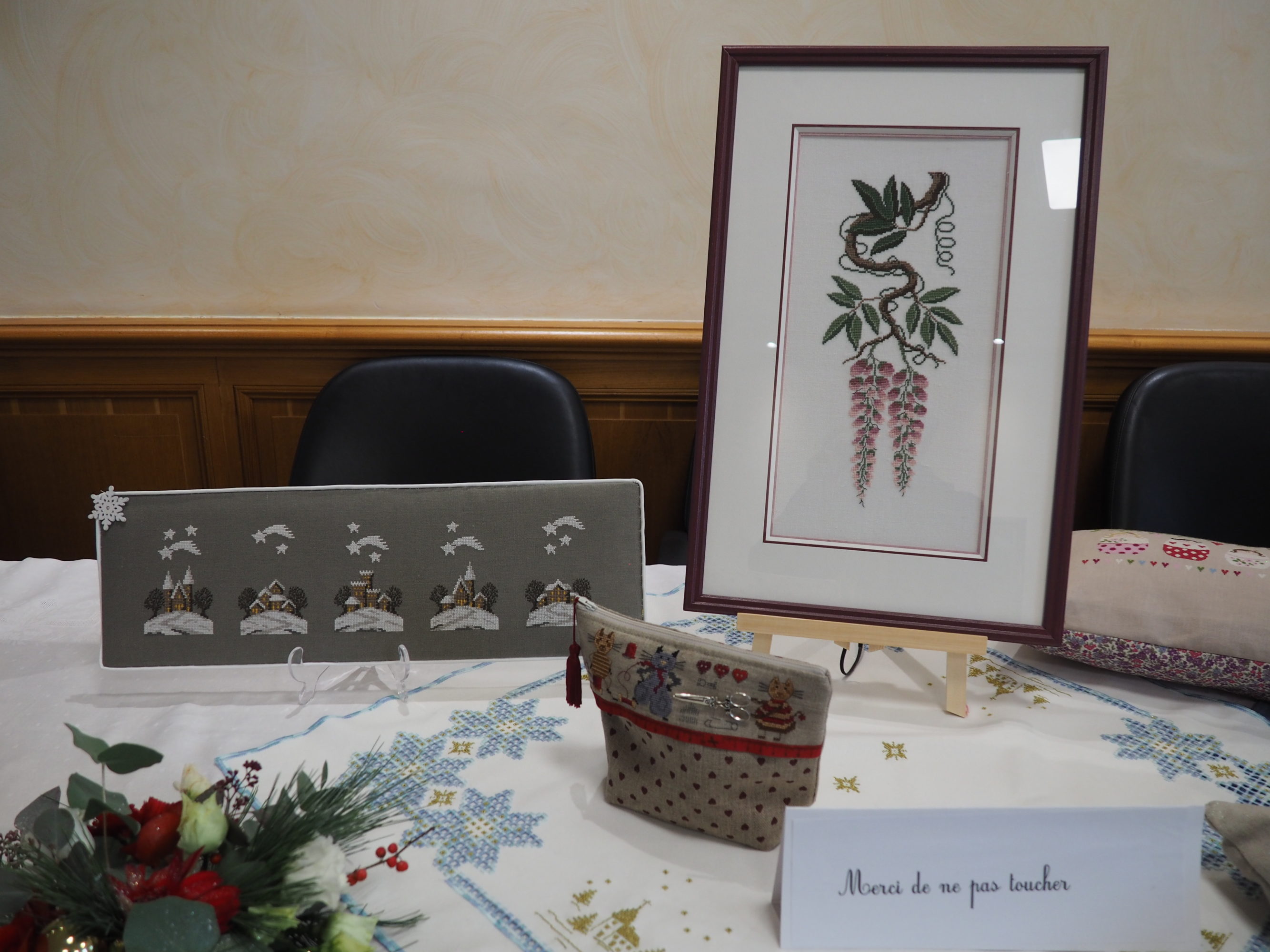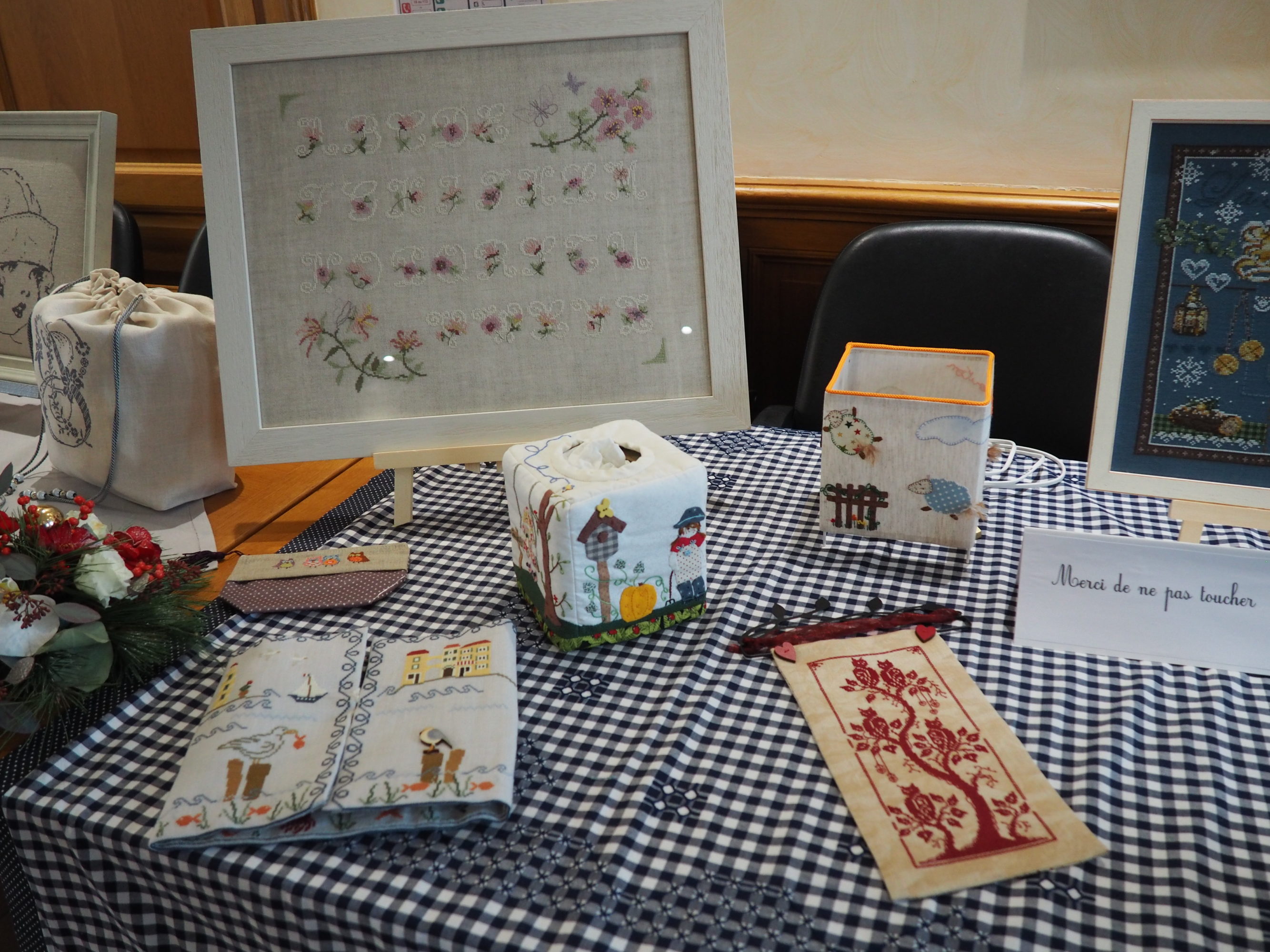 Ce fut le cas encore cette année lecteur et je t’en ai ramené pas mal de photos pour que tu puisses en profiter toi aussi. Mais il te manquera la gentillesse de l’accueil, l’attention portée à chacune pour donner des explications si nécessaire ; et bien sûr des échanges entre brodeuses passionnées impossibles à rendre ici entre membres du club et visiteuses. Tant pis pour toi, il fallait venir 🙂