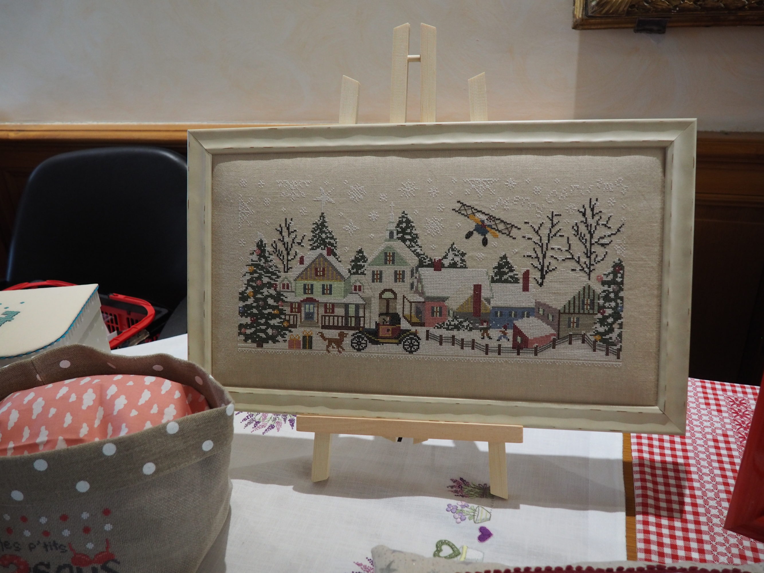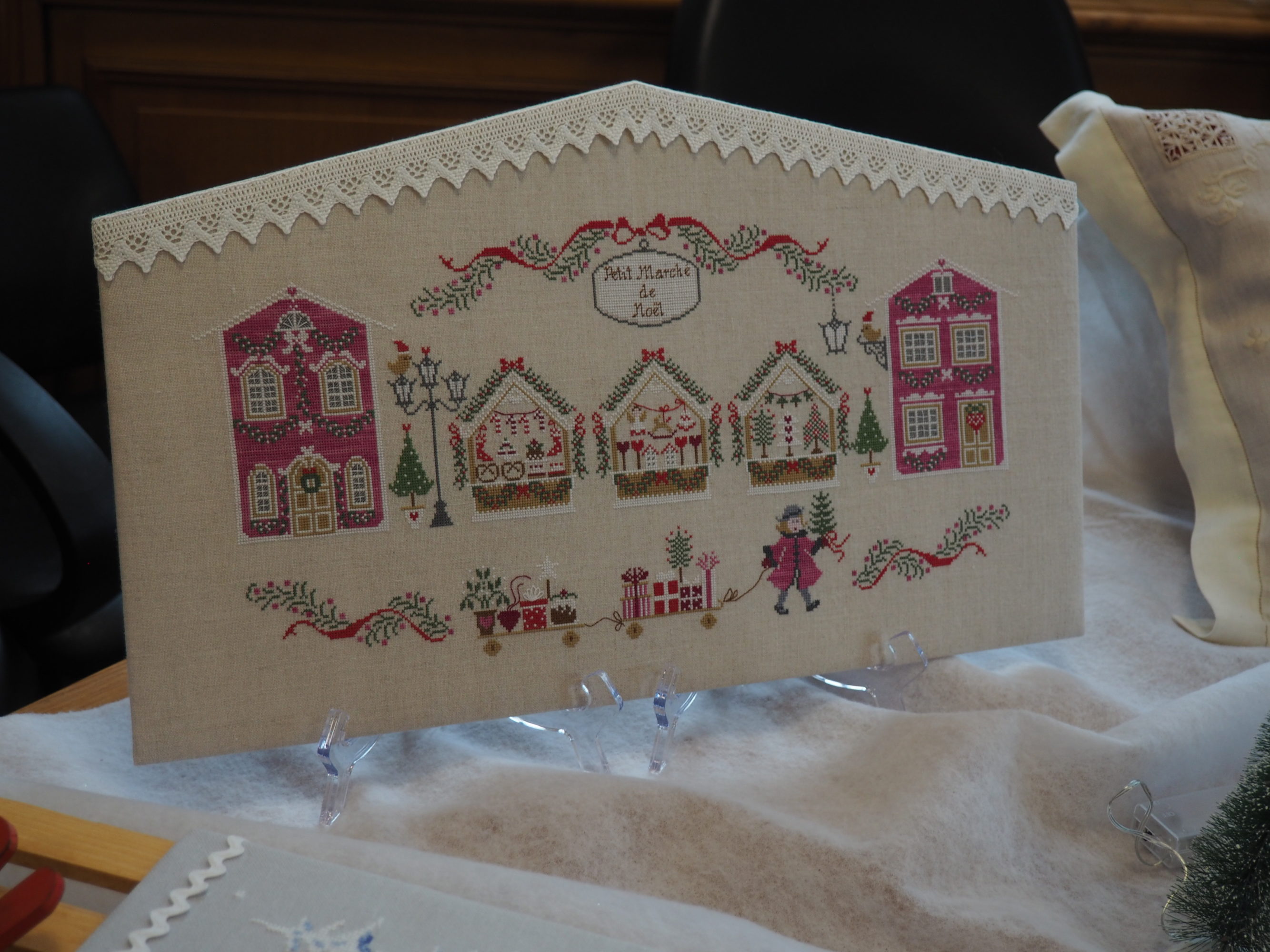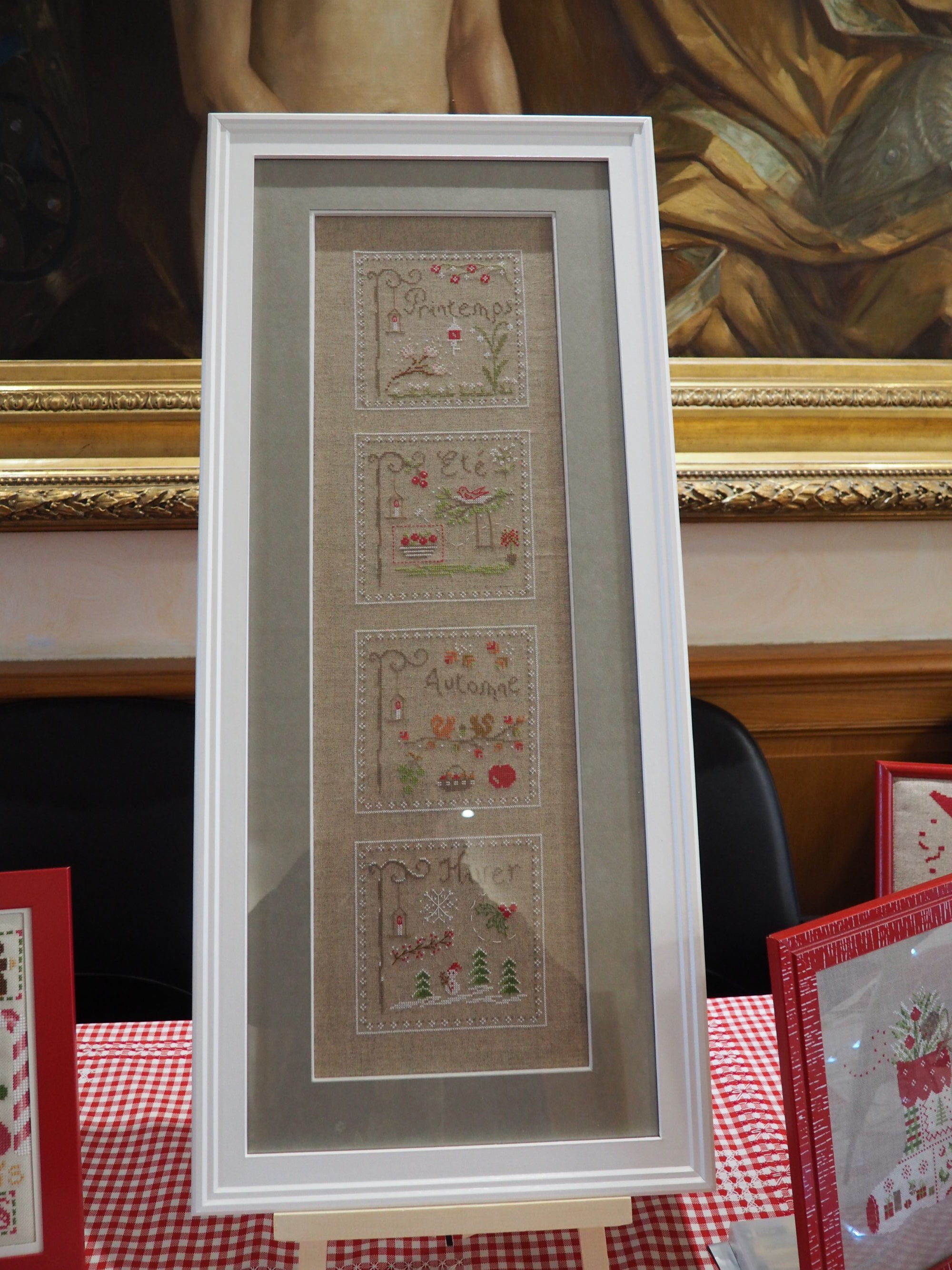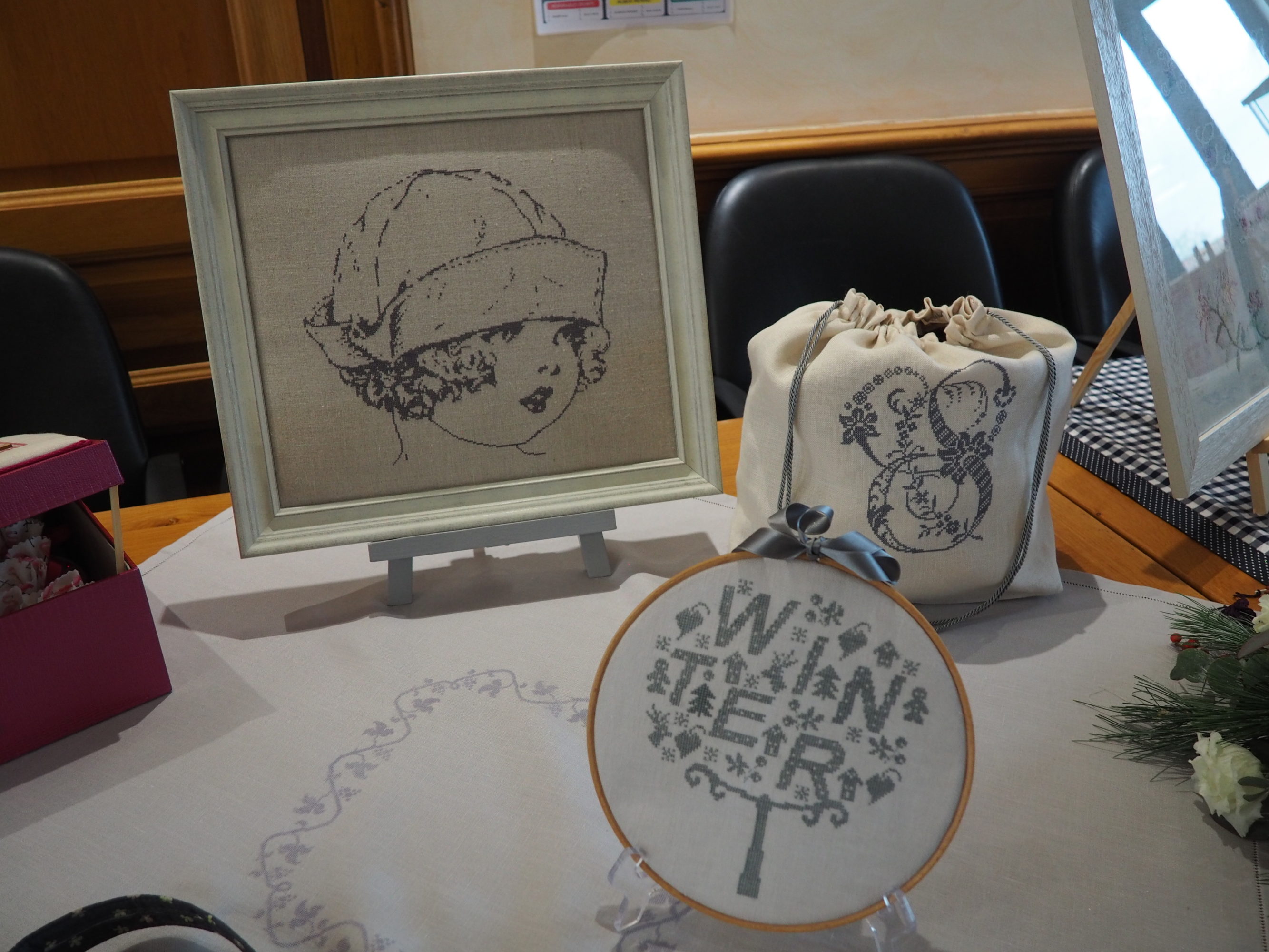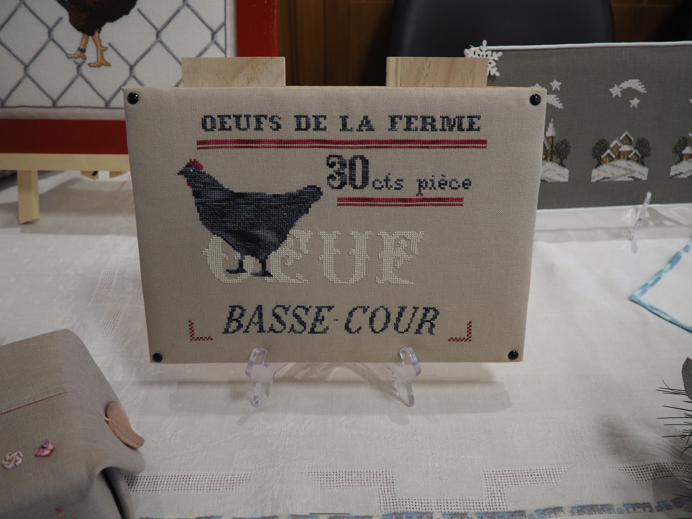Ce fut le cas encore cette année lecteur et je t’en ai ramené pas mal de photos pour que tu puisses en profiter toi aussi. Mais il te manquera la gentillesse de l’accueil, l’attention portée à chacune pour donner des explications si nécessaire ; et bien sûr des échanges entre brodeuses passionnées impossibles à rendre ici entre membres du club et visiteuses. Tant pis pour toi, il fallait venir 🙂