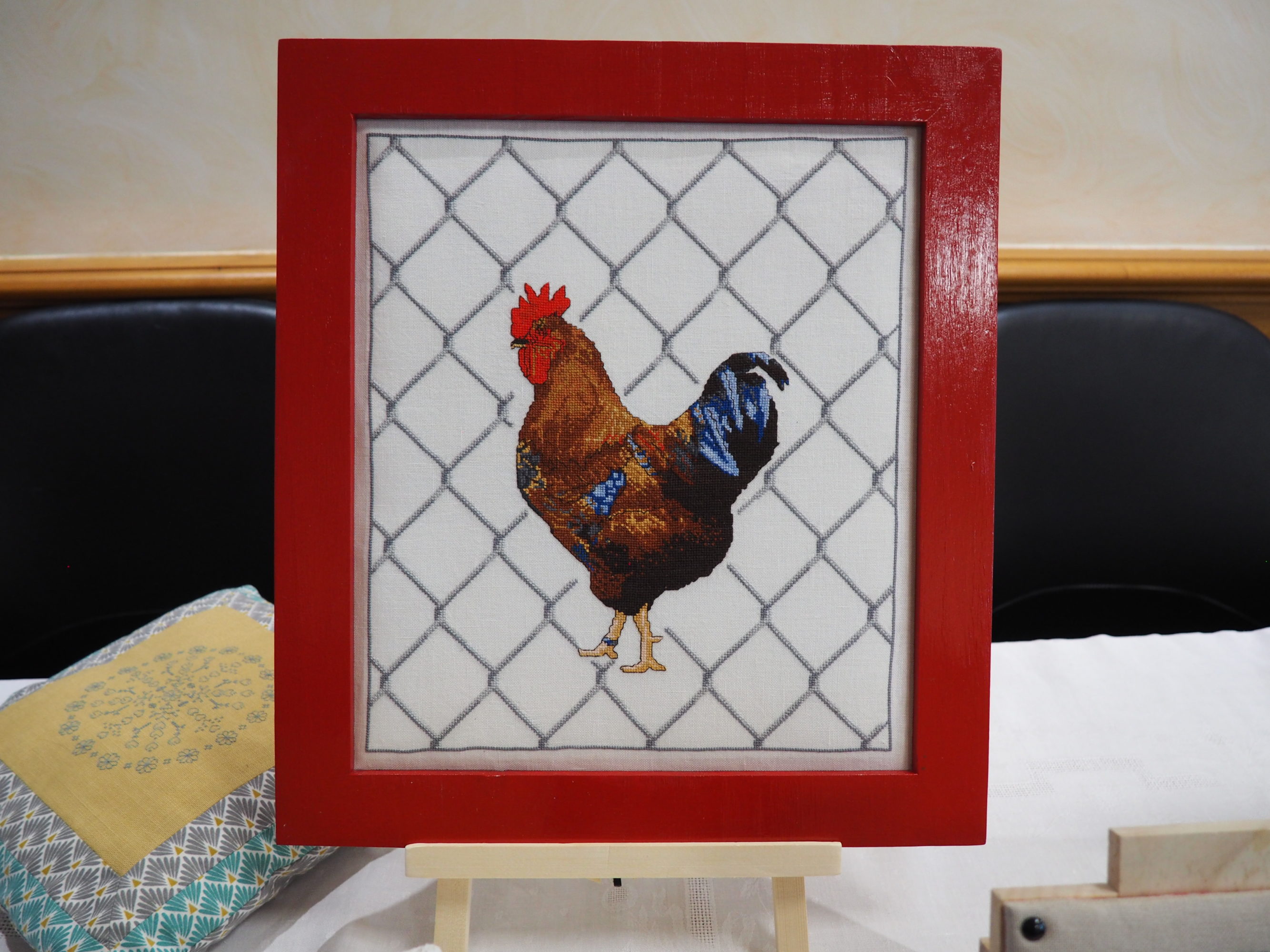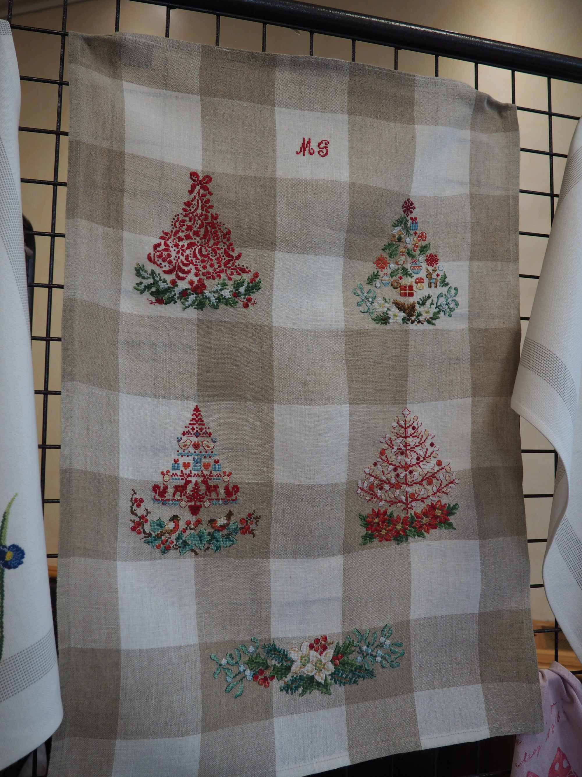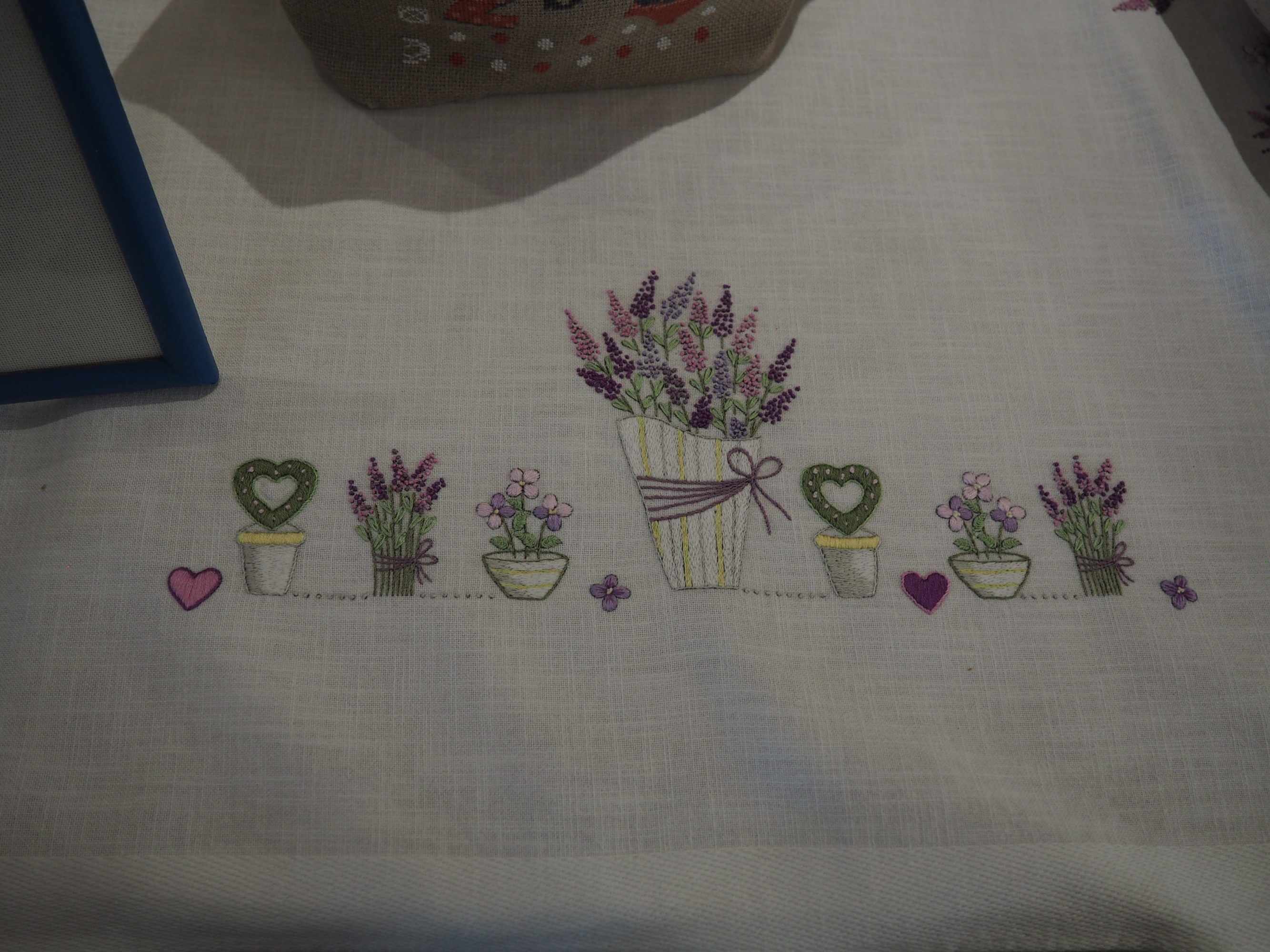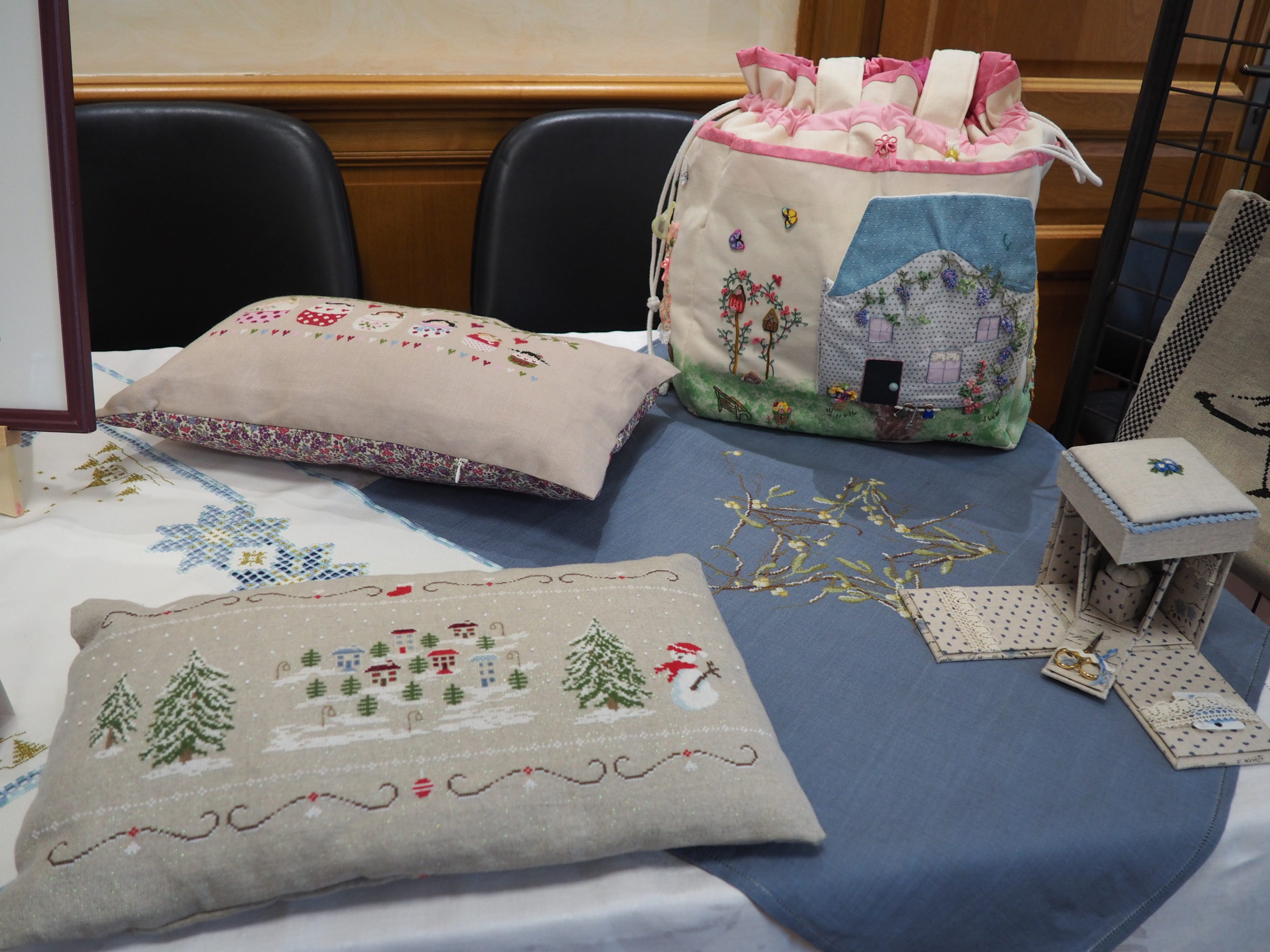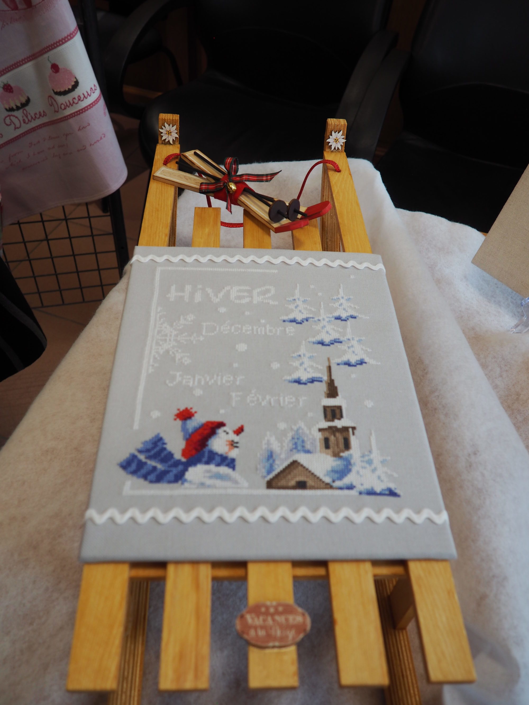 Que nous reste-t-il ? Et bien les beaux torchons, les nappes magnifiques sur lesquelles les ouvrages étaient posés et mis en valeur, quelques coussins et ouvrages plus spéciaux.