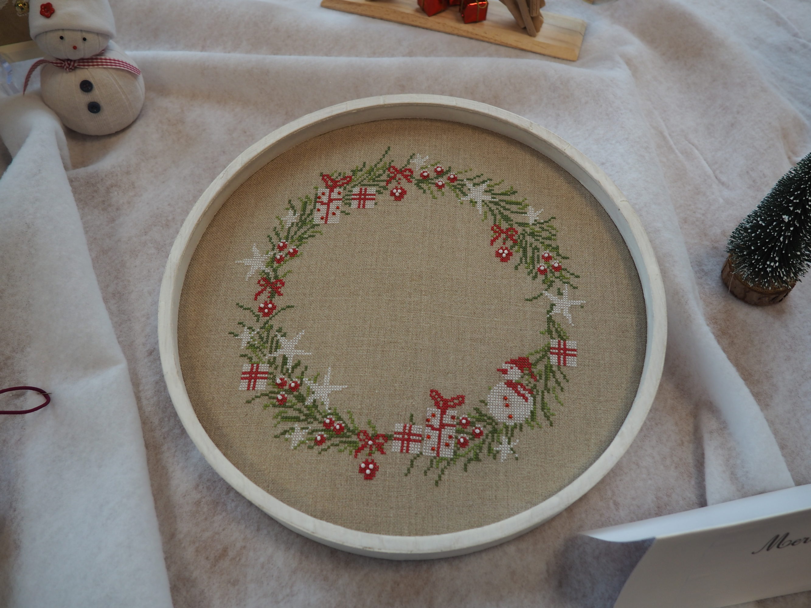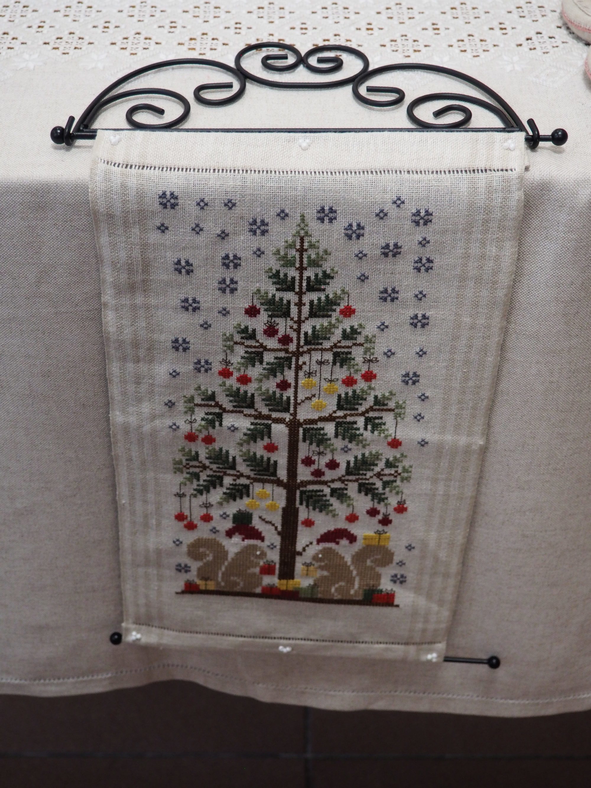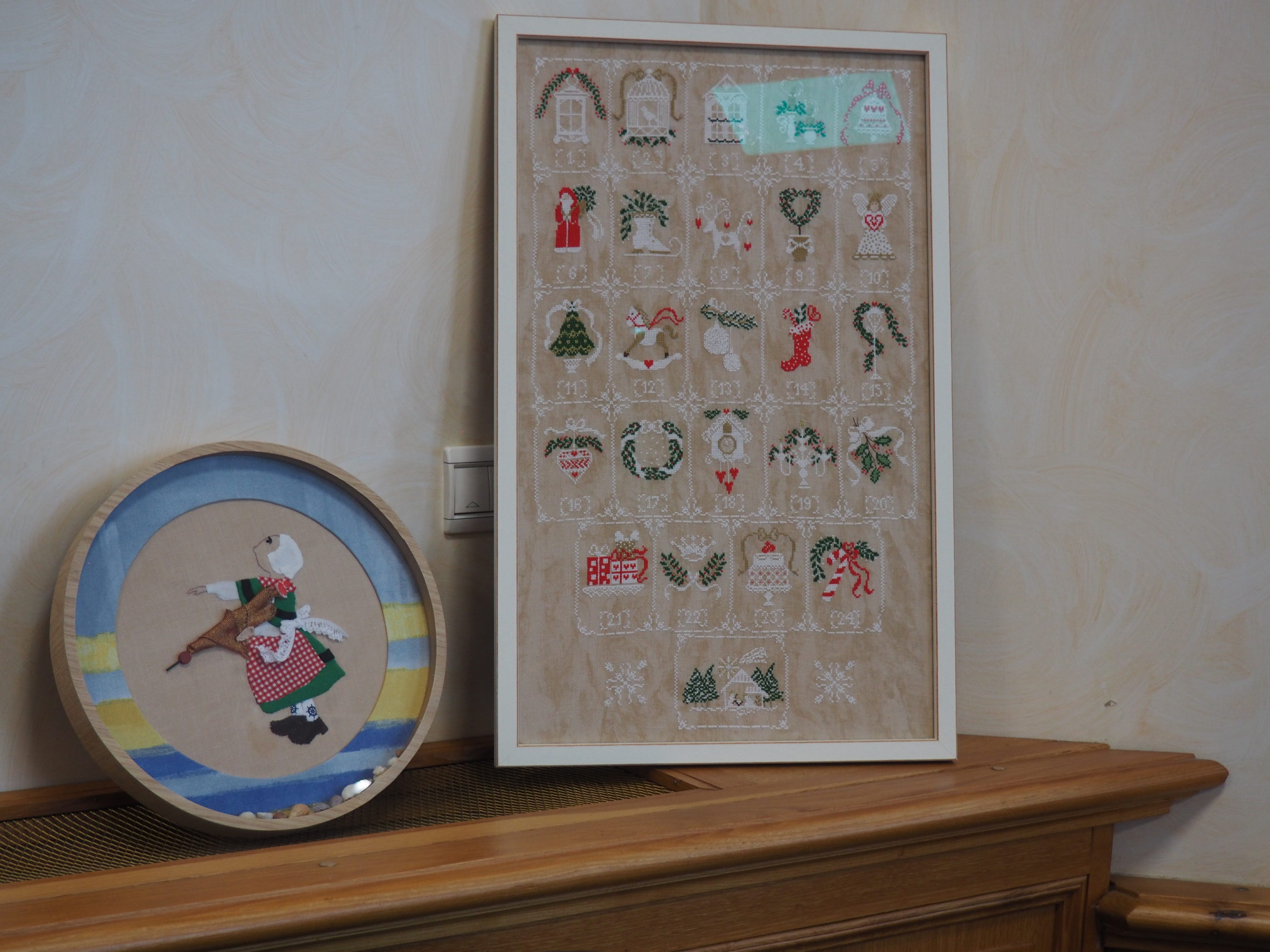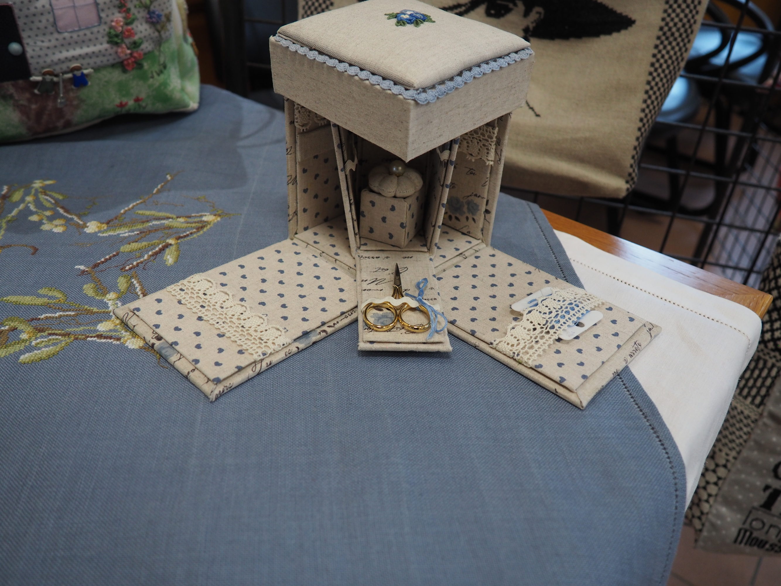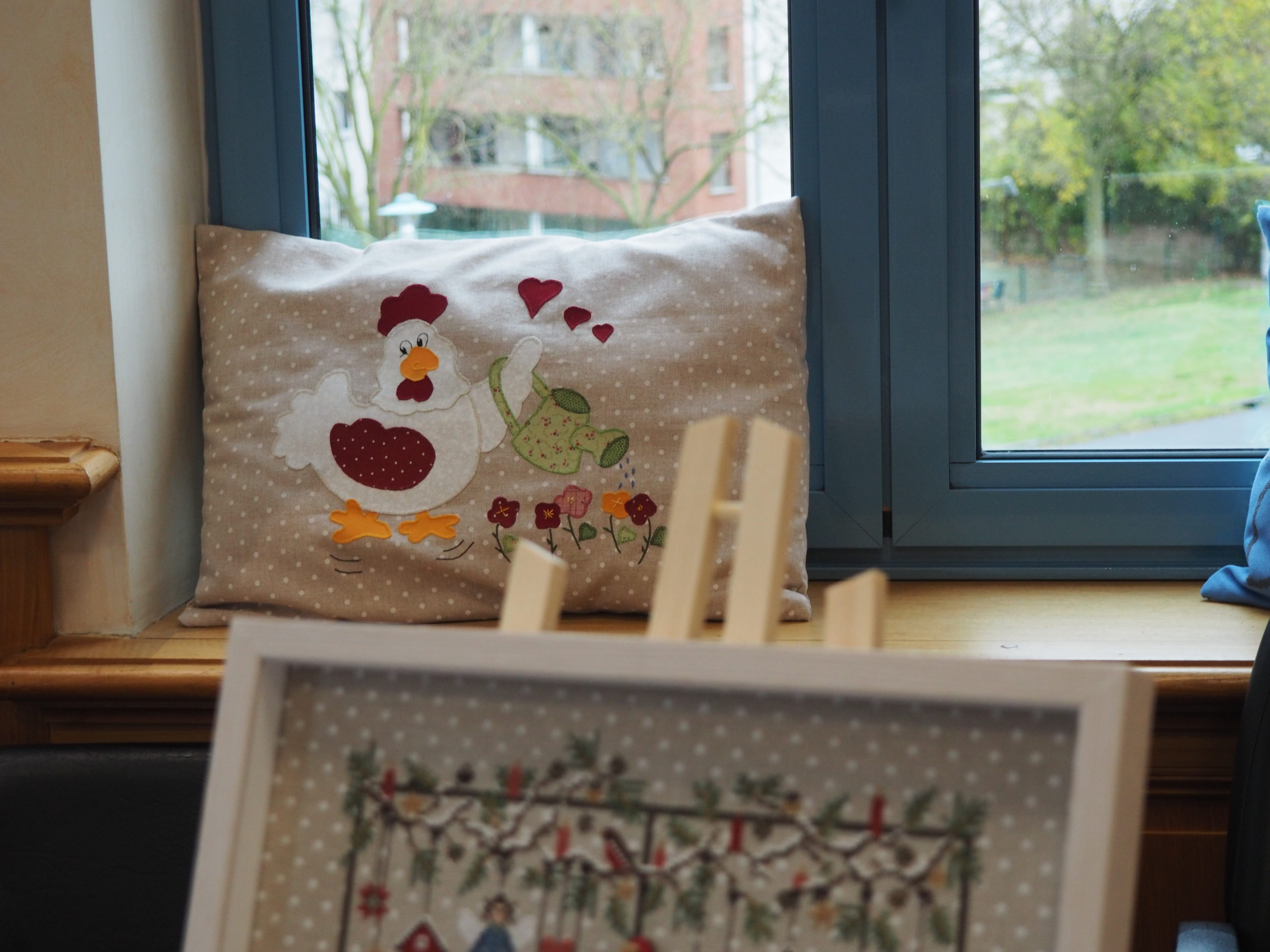 Que nous reste-t-il ? Et bien les beaux torchons, les nappes magnifiques sur lesquelles les ouvrages étaient posés et mis en valeur, quelques coussins et ouvrages plus spéciaux.