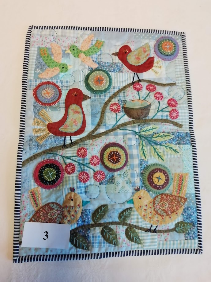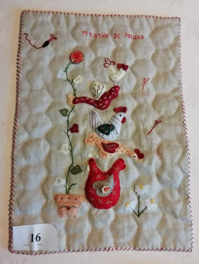 N°16 Marlène Foli – “Pyramide de poules” -Broderie, appliqué avec feutrine. Quilté main.