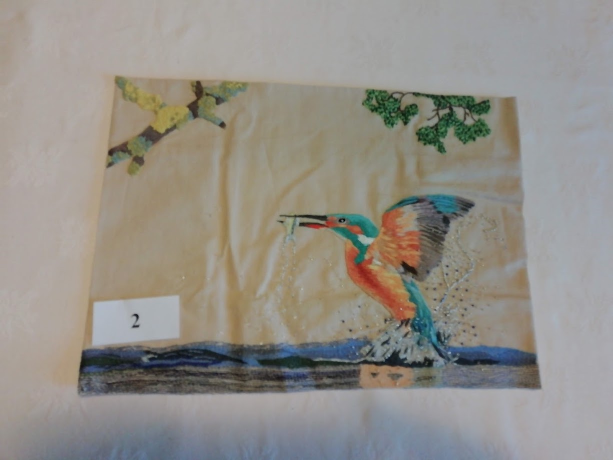 N°14 Marie-Louise Boiseaubert – “Mes oiseaux recyclés” Création avec divers points de broderie. Fils Atalie issus des précédents salon à Pexiora.