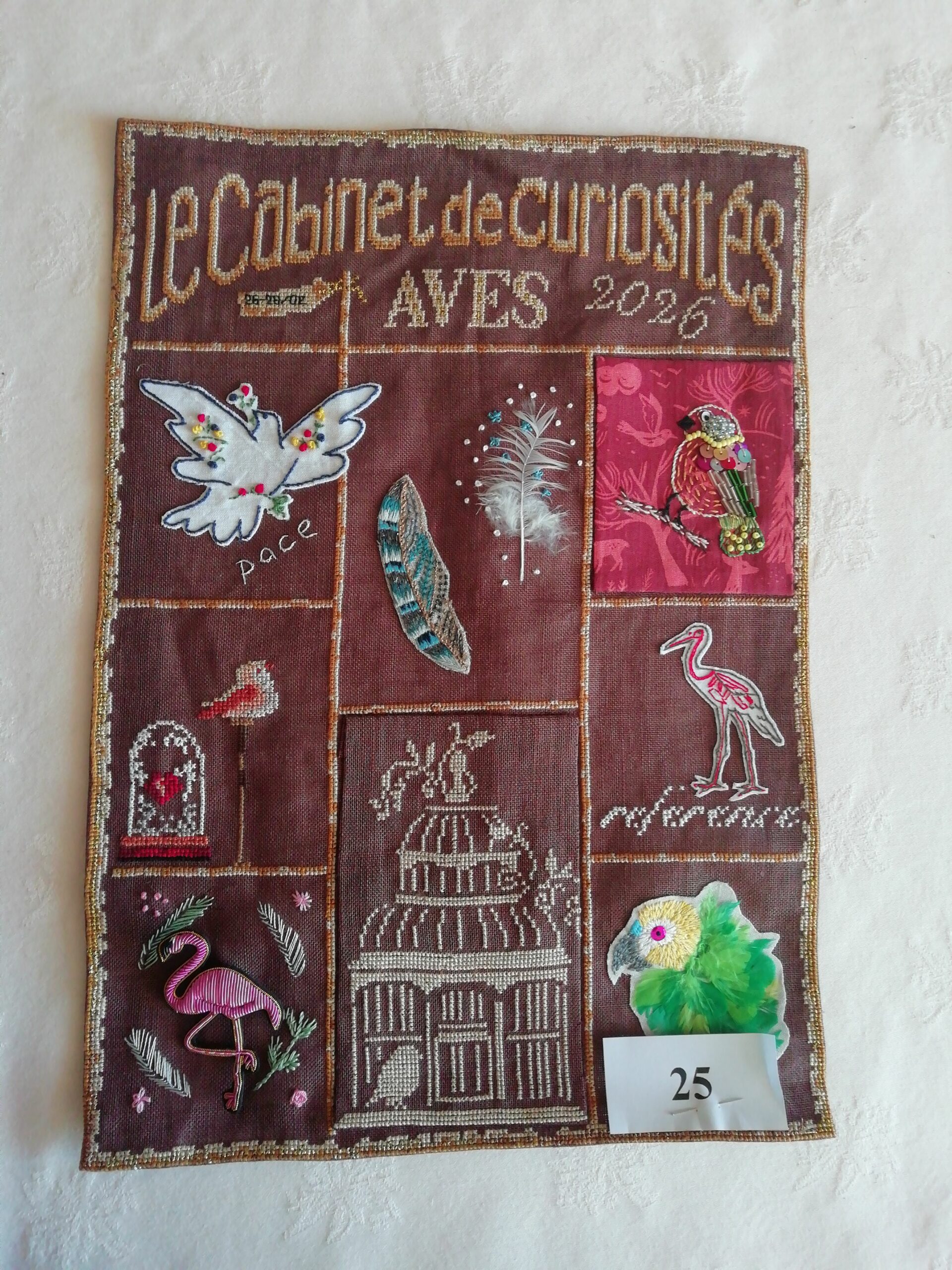 N°25 Marie-Claire Demmou– “Le cabinet de curiosité”. Point de croix et appliqués. Inspiration de plusieurs ouvrages et images internet.