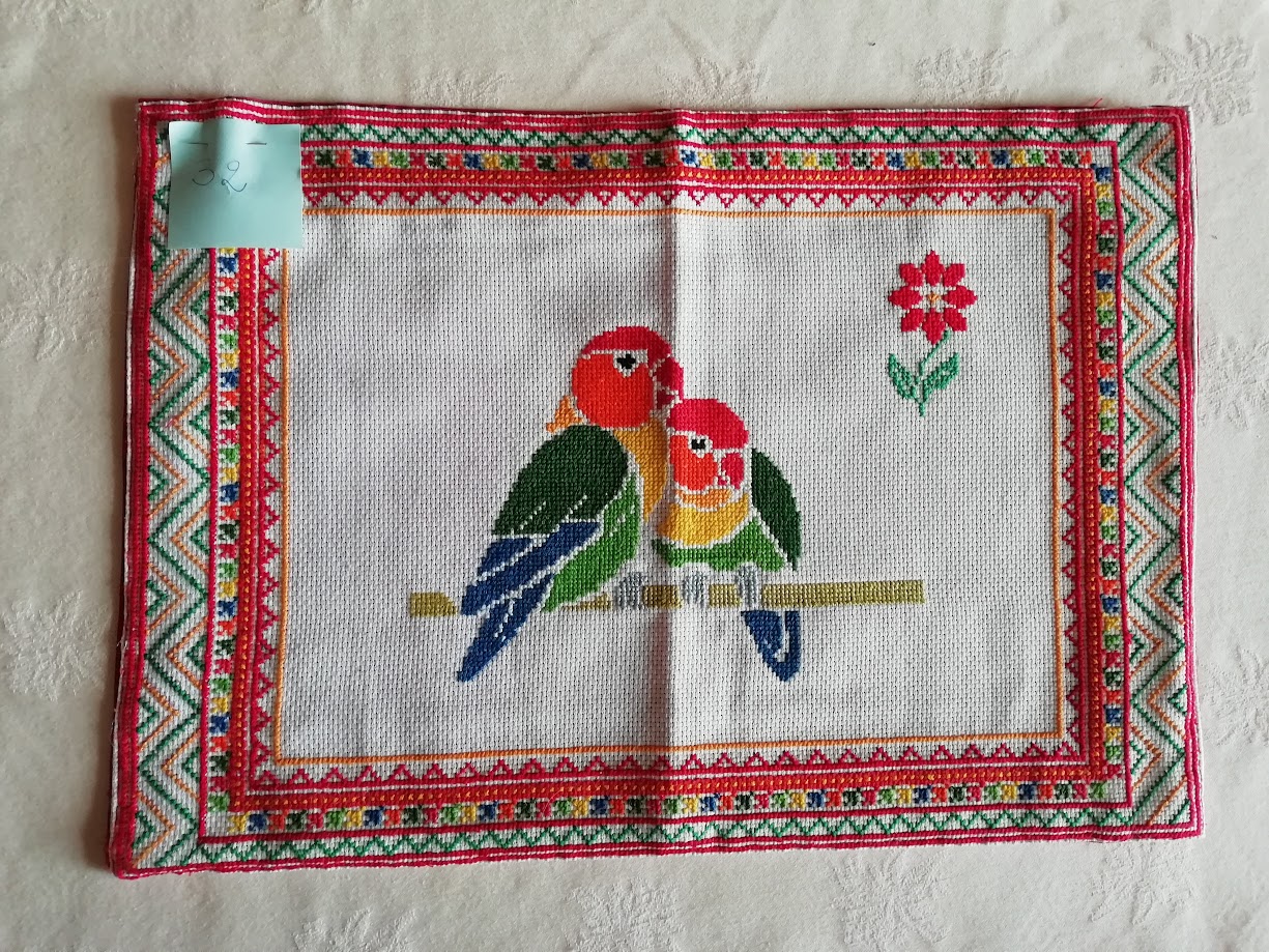 N° 32 Sandrine Charrousset – Point de croix à partir d’un modèle d’internet, création pour les bordures.