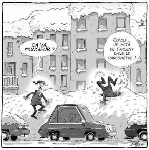 Une heure trente plus tard, le chasse-neige freine net. Le conducteur descend, s’approche de sa vitre et lance, un sourcil levé :