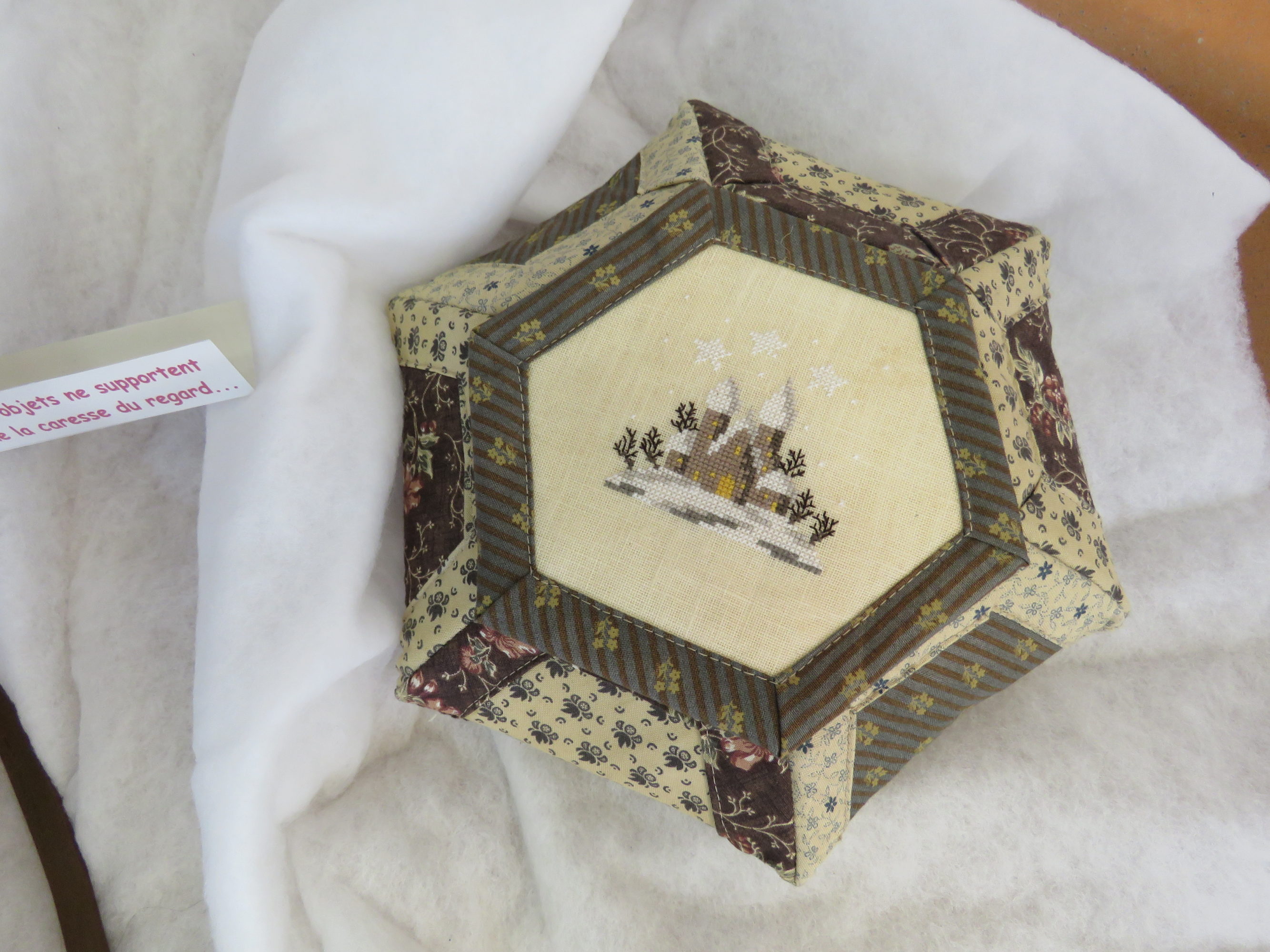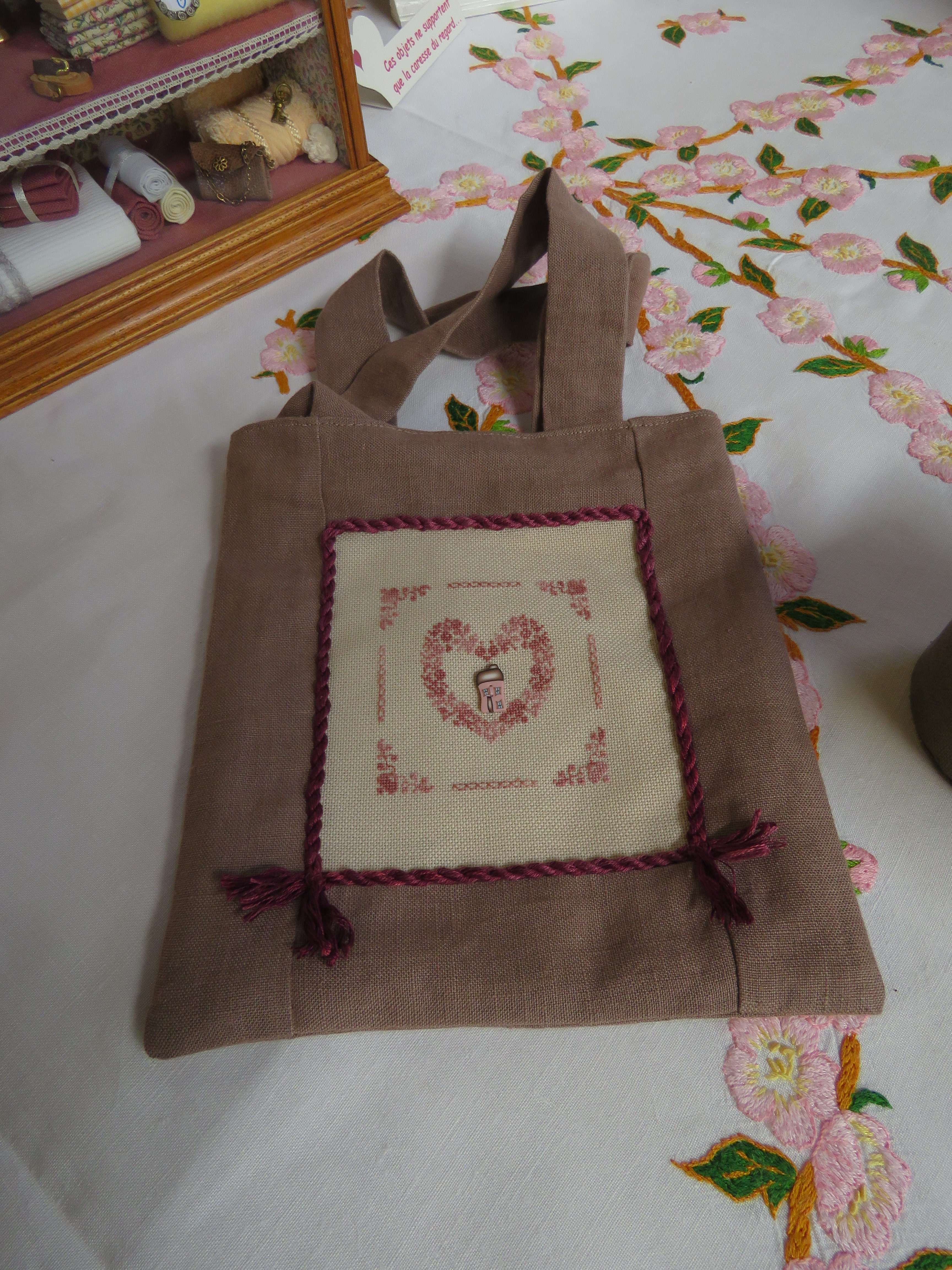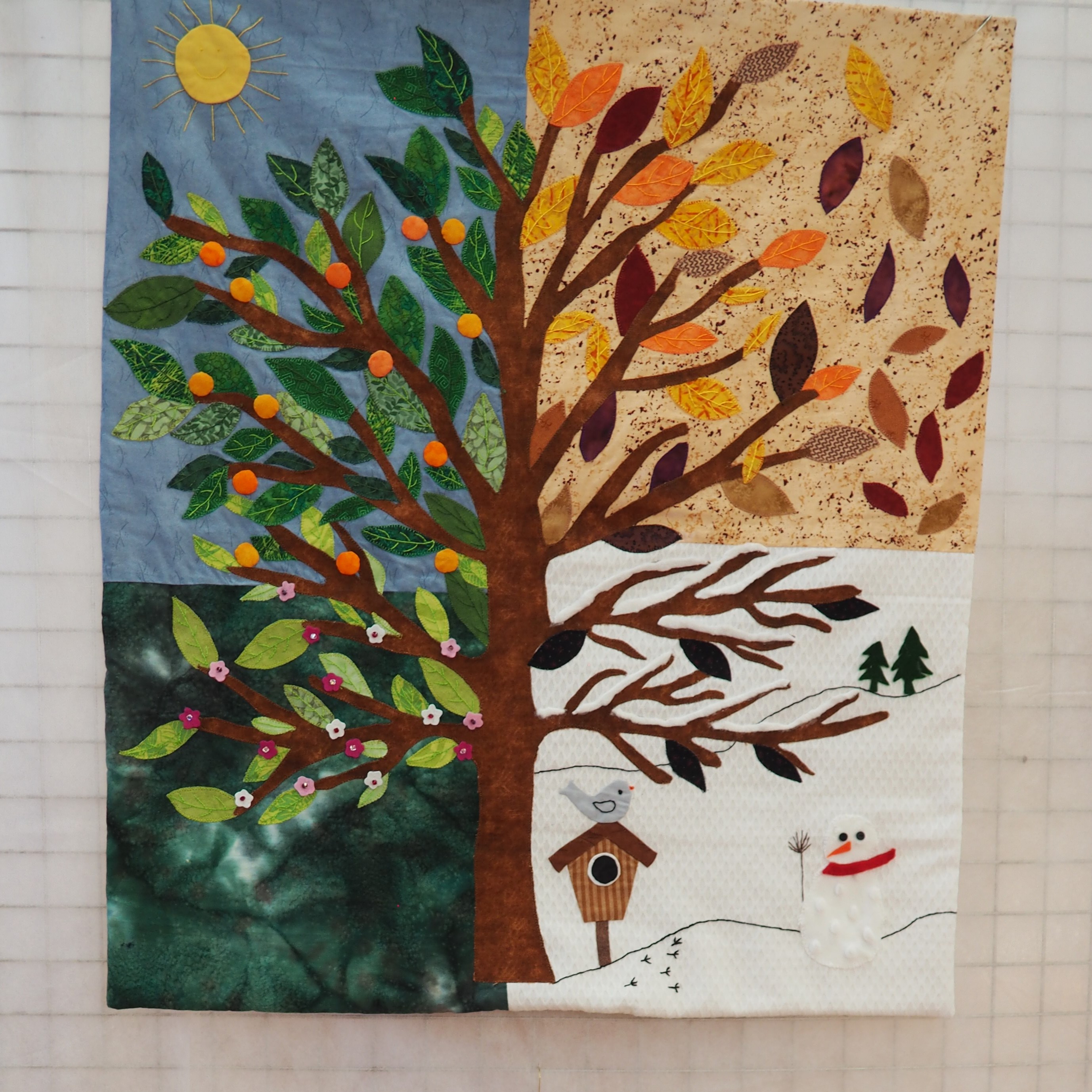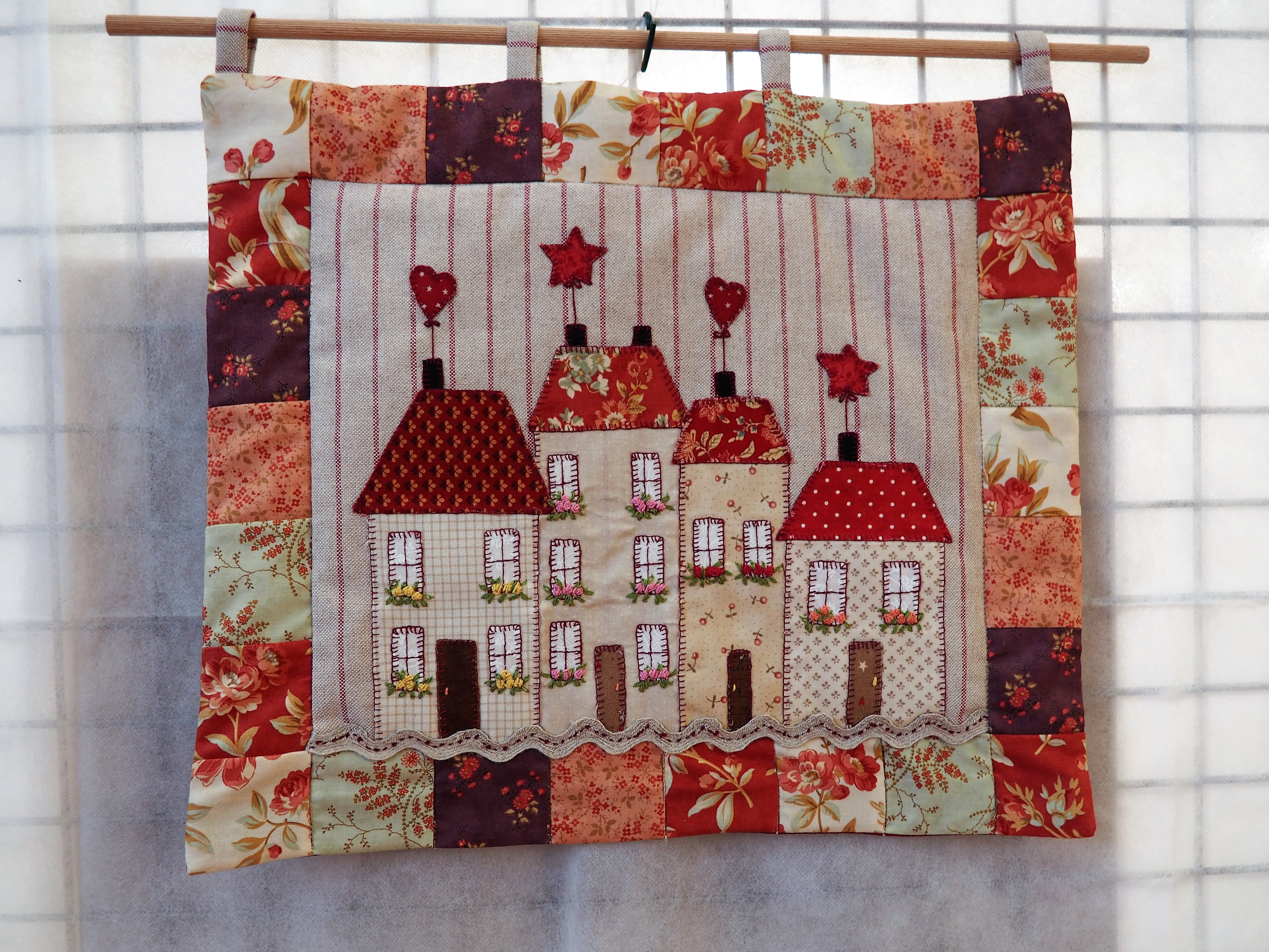 Je t’ajoute lecteur nos 4 petites maisons brodées sur le thème des saisons elles aussi.