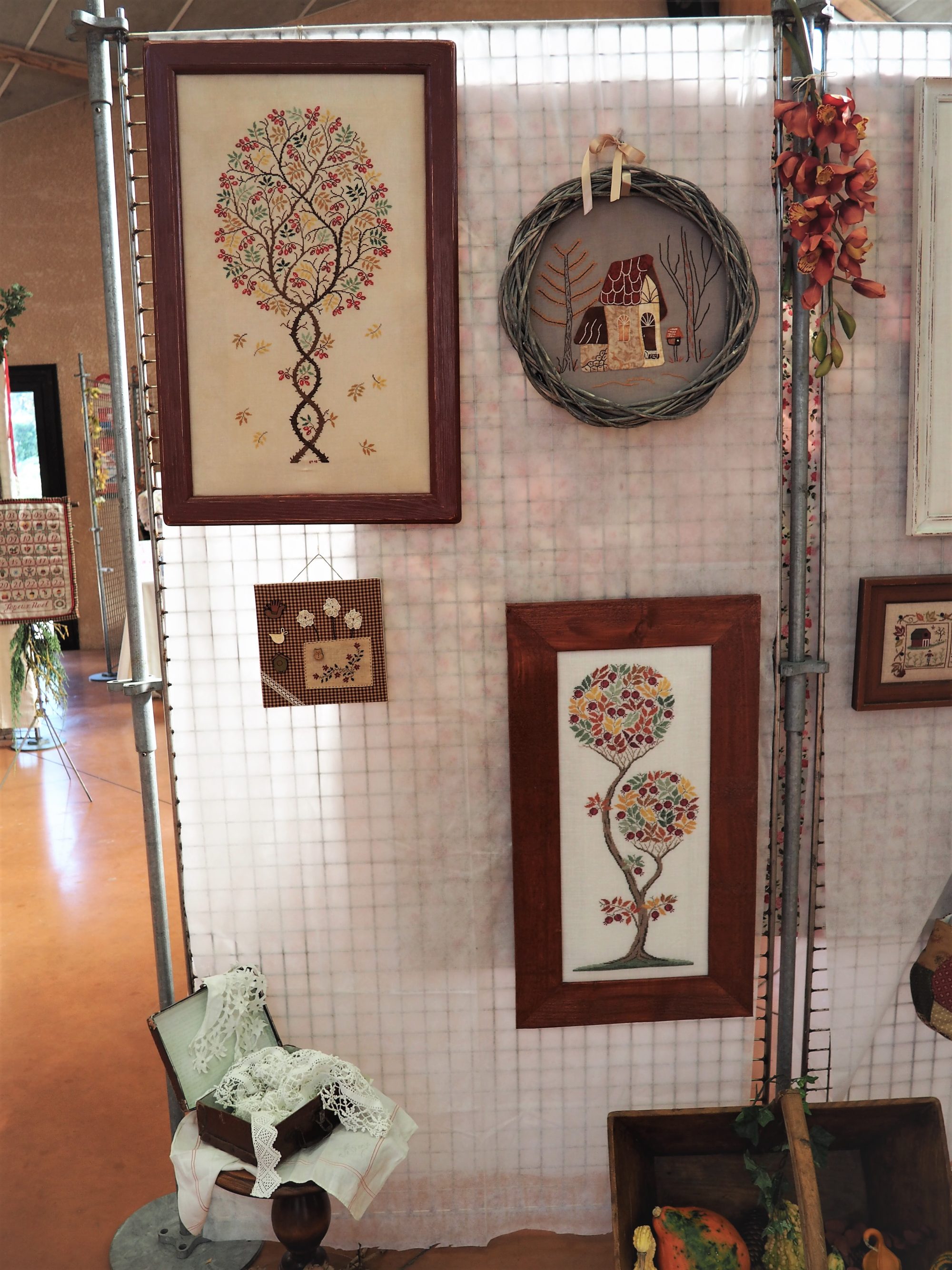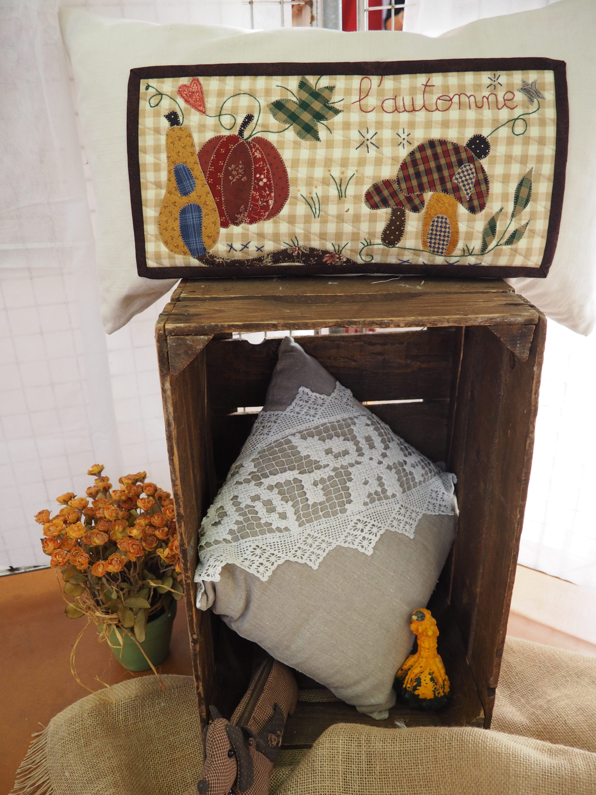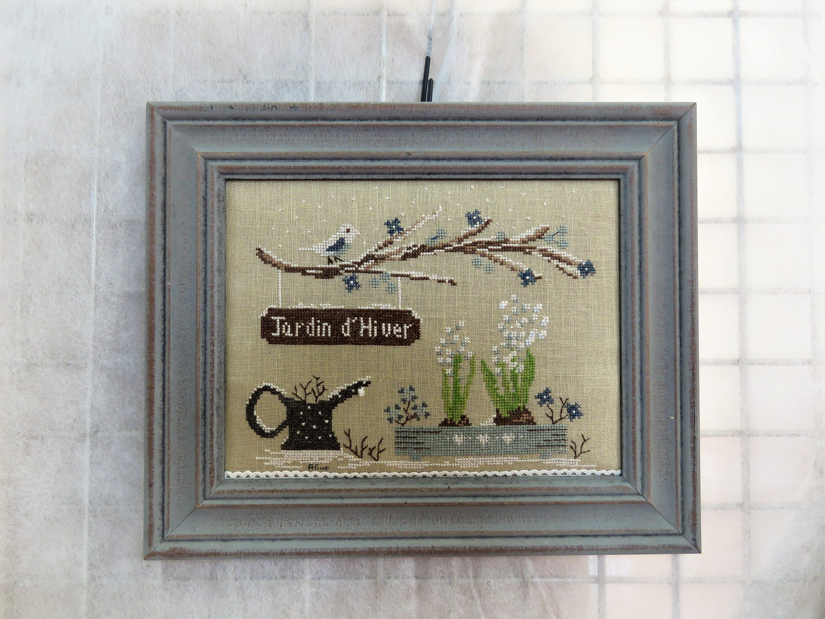 Je t’ajoute lecteur nos 4 petites maisons brodées sur le thème des saisons elles aussi.