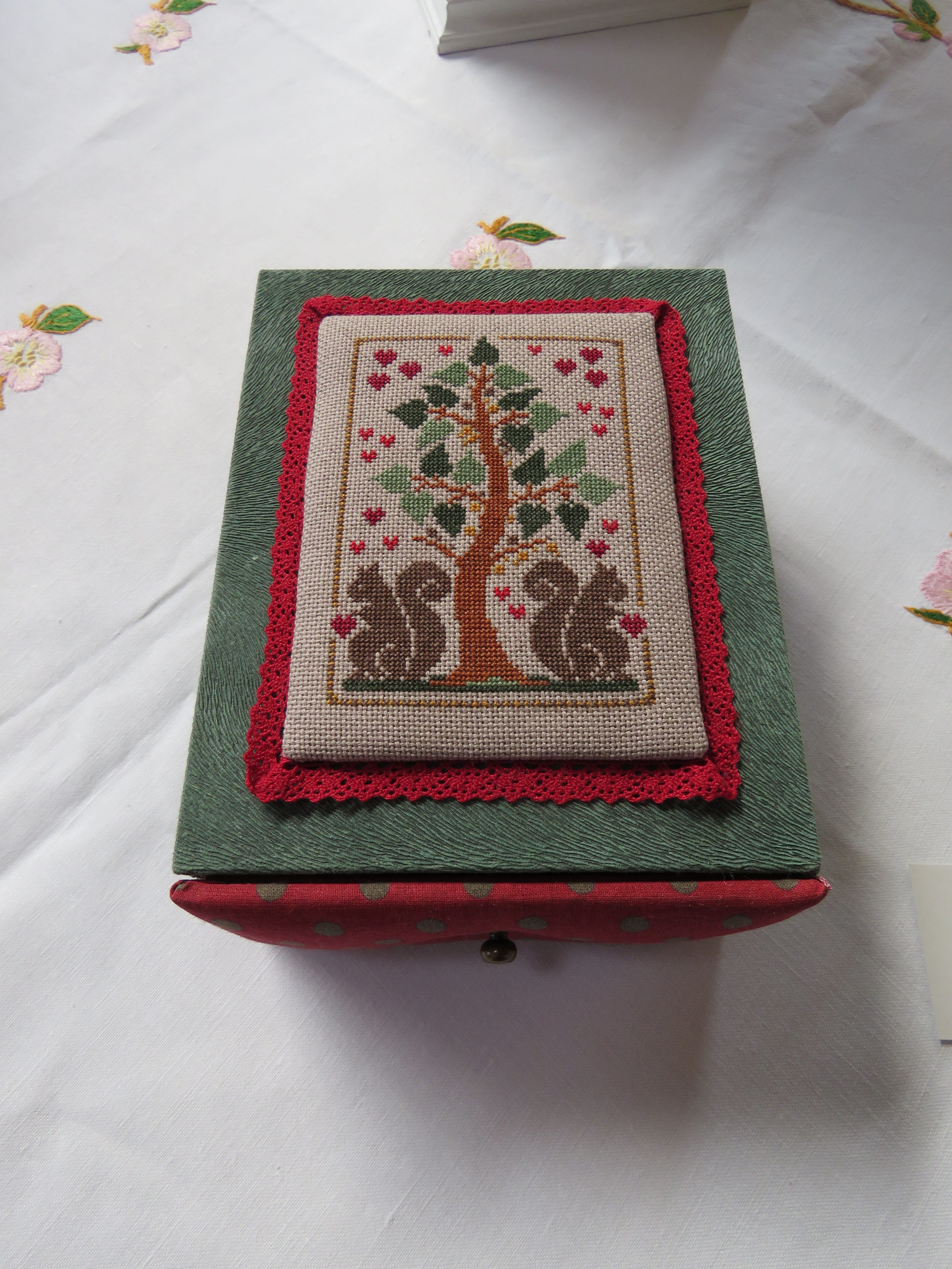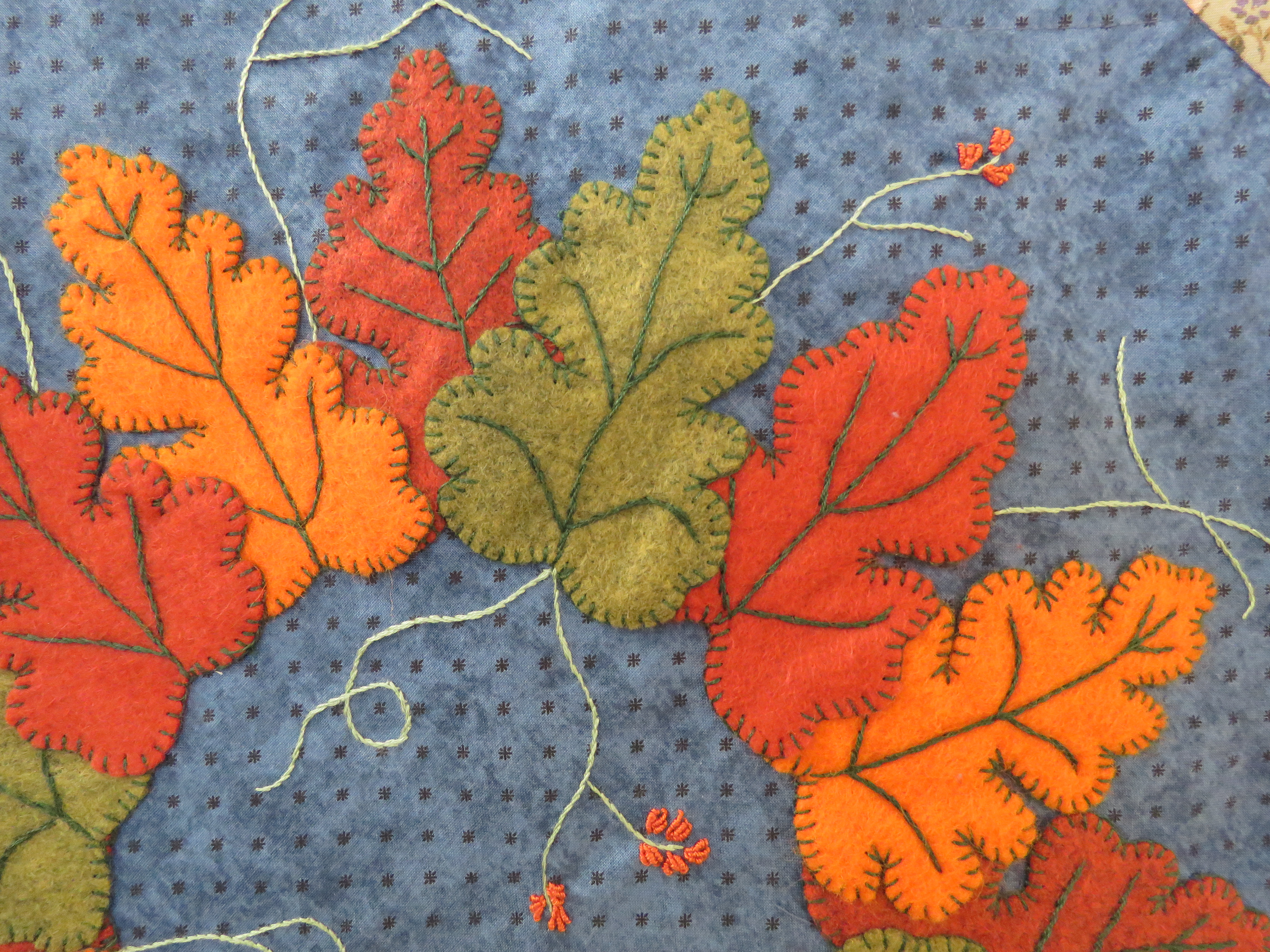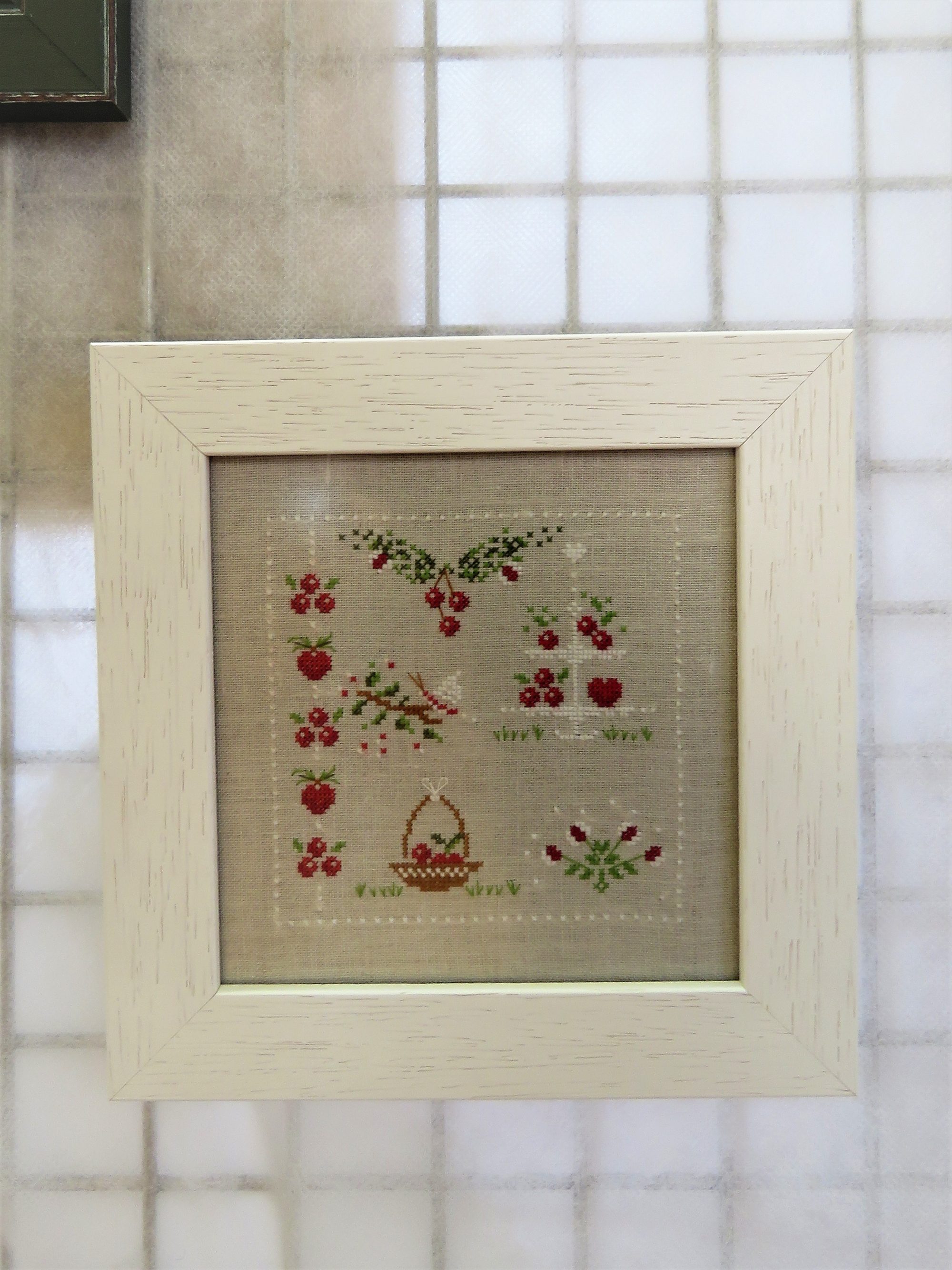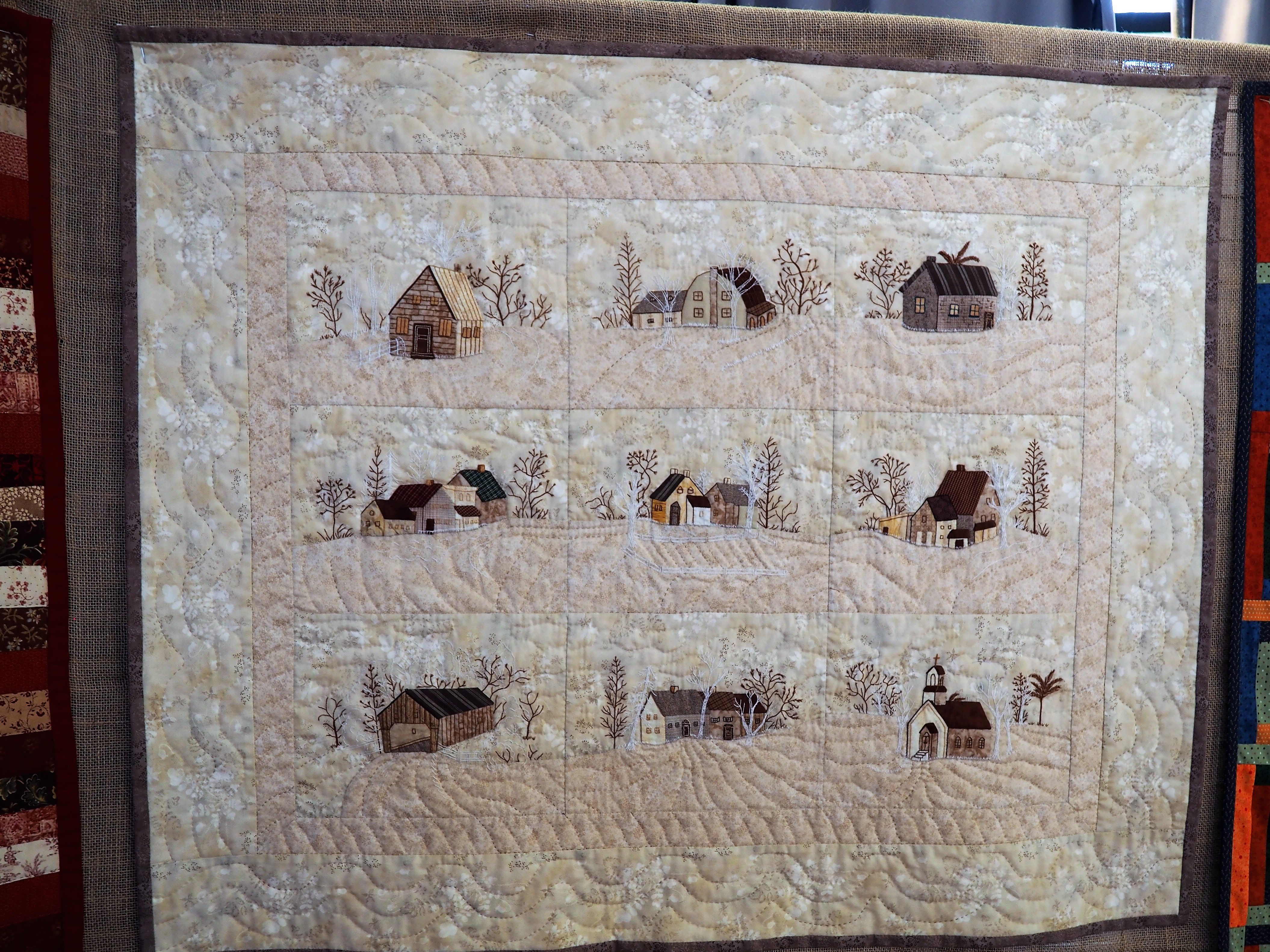 Je t’ajoute lecteur nos 4 petites maisons brodées sur le thème des saisons elles aussi.